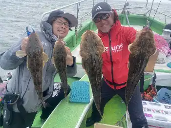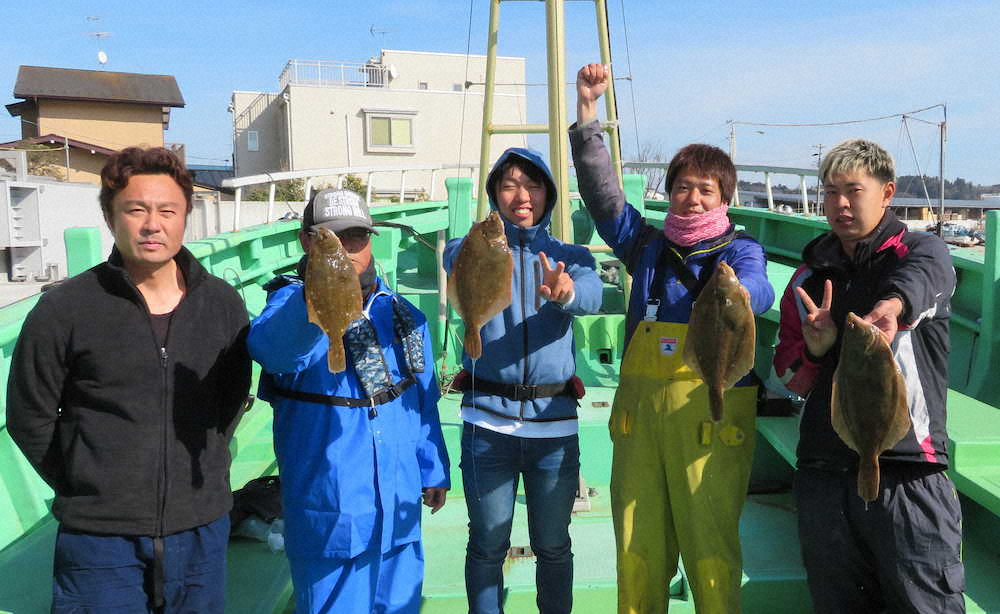 【釣り人掲示板】スポニチ指定釣り宿で構成する東日本釣宿連合会青年部のメンバー4人が遠征釣行。宮城県仙台湾で今が盛期のカレイを狙った。(笠原 然朗)