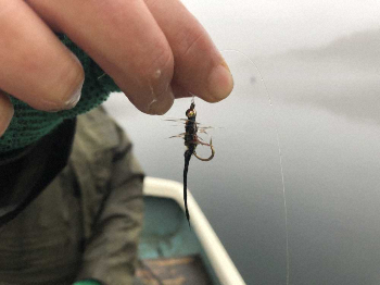 ようやく疲れたのかボートに近づいたところを私がネットインした。初めてラバーネットが小さく思えた、75センチの巨大なレインボートラウトだった。