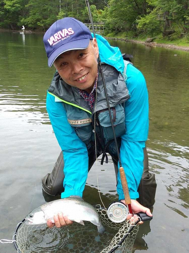 ユーチューバーかなぱん 緑色スプーンで食べごろニジマス25センチ「奇跡の一匹でした」