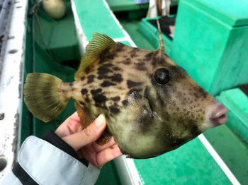 “初挑戦”相模湾で称賛!ラブリーショウサイフグ テンション抜かないようしっかり巻き上げて