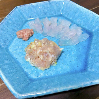 この日は午前8時に出港し、航程15分弱でカワハギのポイントに到着しました。釣りのハードルとして、餌に使う青イソメなど“虫”が苦手…という方も多いですが、カワハギの餌はアサリのむき身。なるべくコンパクトにハリに付けるのがポイントです。なぜならカワハギは「餌泥棒」の異名を持ち、おちょぼ口で器用に餌だけ食べて逃げてしまうから。