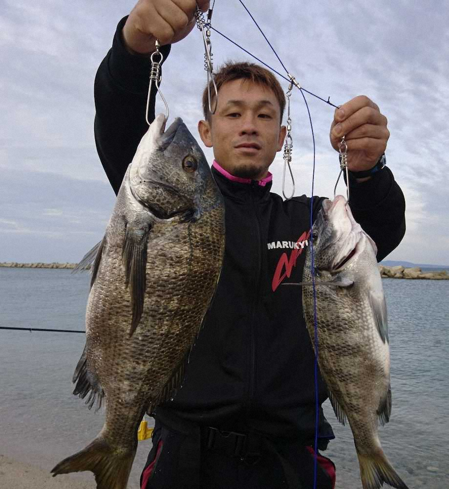 クロダイ「やっと来た~」 フグに苦戦も38、30センチ 数時間粘って