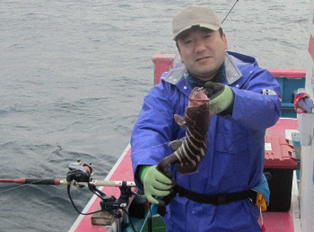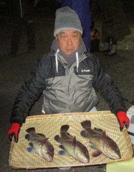マハタ初挑戦。泳がせは「昨年10月、ヒラメに行って4匹」以来2度目だ。ポイントに到着して第1投目。「来ました」。竿先がガクガク揺れている。船中1号だ。その後はパッタリで「難しいですね」。首をかしげるばかり。ところが手元が暗くなった夕マズメ。再び「来ました!」。1匹目よりサイズアップ。タイムアップ前の締めも辻脇さんだった。