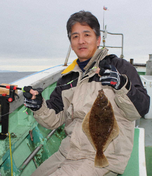 開始から早速竿を曲げた、黒川郡・加藤毅さん(42=会社員)は「カレイ釣りが好きで、シーズン中は月に2回ほど乗船しています。誘って当たりを出すところが面白いですね」と好調なスタートを切った。