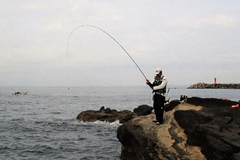 中央の長津呂湾は波が静かすぎるために人気薄だが、水深はかなりある(中央部で8メートル)ので意外に好場所だ。南向きは足場が良いので初心者にも安全。北向きは南風が強めの時でも竿が出せる「避難場所」である。