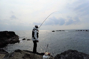 長津呂崎ではホテル寄りの北側と長津呂湾の出口付近が釣りやすく釣果も良い。中央部はハエ根が大きいので遠投で狙うことになる。