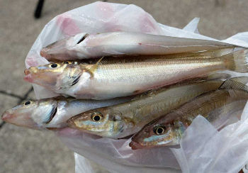 現在よく釣れているのは良型のシロギスで20センチ級がそろう。これに夏場の名物であるイシモチが交じるようになった。ハゼや小型のシロギスを泳がせてのマゴチも狙えるようだ。
