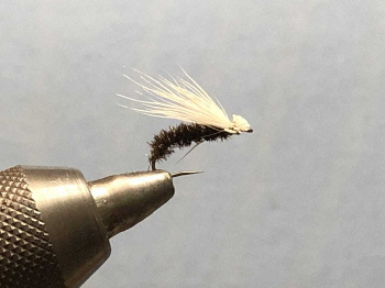 私の使用フライは#12のディアヘアー・テレストリアル。これ一本で水面から底まで探ることが可能だ。水中で使う場合は、フライから30センチほどのティペットに小さなオモリを付けてゆっくりフライを沈ませる。着底したフライを少し動かすと模様の違う魚が飛びついた。合わせると独特なローリングファイト。重量感のある引き込みを見せたのは40センチのブラウントラウトだった。使用ロッドはVARIVAS「パワートレイル」9フィート#5。