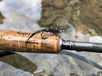 「チェコニンフ」とは競技フライフィッシングの強国チェコチームが編み出した重いビーズヘッドのニンフフライを複数沈めて川底に潜む大物の鼻先に送り込むヨーロピアンテクニックだ。少しアップに投げて厚い流れに14フィートのリーダーが全てのみ込まれたらラインを適度に張る。リーダーが大岩の近くをすり抜けた直後に、ドスンと手元に当たりが来た。合わせを入れると大物特有の首振りだ。下流に走り流心の石に逃げ込もうとし、ジャンプしてから流れに乗って走りリールを逆転させる。鬼鱒のファイトはスリル満点だ。瀬を2つ下ってようやくネットイン。53センチのレインボートラウトだった。フライはゴールドビーズニンフ。ティペットは同「フロロカーボン」2X。この仕掛けで11時までの3時間で55センチを筆頭にヒレピンの鬼鱒が3匹出た。鬼怒川で野生化した鬼鱒はまさに鬼のように引く。