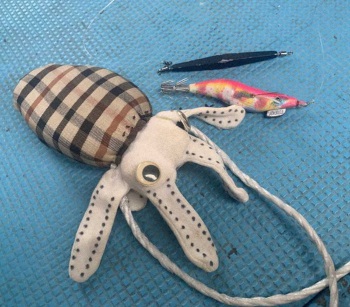 取り込みに注意を。スミイカのおなかをつかんだり、ストレスや衝撃を与えてしまうと思い切りスミを吐いてくる。またこのスミが強烈でなかなか取れないのだとか。スミを吐く腹を外側に、黒っぽい背を自分側に向け、気をつけながらそっと水揚げ。その後もすぐに1匹追加して午前中だけで2匹。おお…なんだかいい感じ。