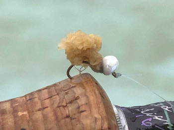 使用したのはVARIVAS「2130VBL」#12に巻いたパールバグ。フッキングが素晴らしく独特の集魚効果のある必殺フライだ。