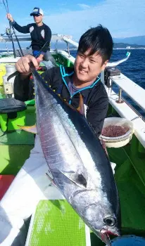 【ココが一番!】「オダモン」が今、相模湾で暴れまくっている。主に西湘・小田原沖で釣れるモンスター級のキハダのことだ。50キロを超す大物で、最近になって60キロ超級も顔を見せだした。コンスタントな釣果が出ている葉山鐙摺・たいぞう丸でトライ!(スポニチAPC 林 悠二)