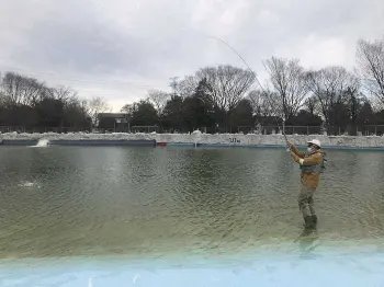 真冬にトラウト“フライハイ” 埼玉「多摩湖駅前FA」でスクール開催