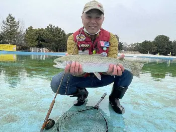 【ガイド】埼玉県川越市にある「川越水上公園プールフィッシング」のビックトラウトゲームの季節が到来。これから春に向けて水温上昇と共にエキサイティングなファイトが楽しめる。(吉田 俊彦)