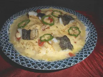 (1)ヒラメを5枚におろし、塩、コショウし両面に小麦粉を付ける(2)フライパンにバターを溶かして(1)をソテーし、一口大に切る(3)市販のホワイトソースと、ゆでたマカロニを交ぜる(4)皿に(3)をよそい(2)とスライスしたトマトとピーマン盛り付けた後、とろけるチーズをたっぷりのせてオーブンで焼けば完成。来店客に試食してもらったところ「ヒラメのムニエルとチーズが合う!タバスコ、レモンをかけても絶品だ」と大絶賛だった。