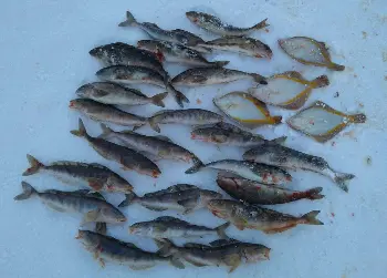 5日も午前5時から開始。前日同様に食いが渋いものの、夜明け後からホッケが当たりだす。そして同10時頃から新たなホッケの群れが寄ってきたようで、一気に食いが良くなりペースが上がる。型もさらに良くなり最大42センチと面白い。まだまだ入れ食いが続いていたが昼に終了し、ホッケ43匹、スナガレイ2匹。佐伯さんもほぼ同数だった。
