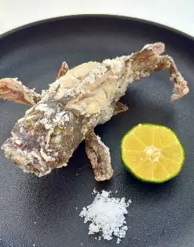 ○…カサゴを釣ったらオススメしたいのが、この姿揚げ=写真。ウロコと内臓を落としたら、背中に切れ目を入れて揚げるだけ。じっくり2度揚げすれば、骨までバリバリおいしく食べることができる。