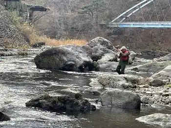 筆者は年末の日曜日に長男の運転で川治温泉を目指した。午前10時過ぎに合流点に到着。見ると鬼怒川は渇水気味で、男鹿川の方が水量がある。男鹿川には大型の魚影も見えたが、良いポイントには先行者が入っている盛況ぶりだ。ウロウロしているうちにお昼近くになってしまい、早めの昼食を取り、釣りは午後からにした。