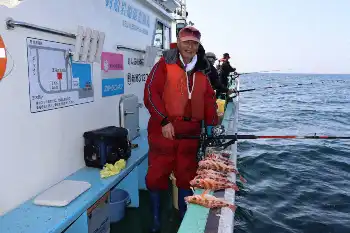 岩船・恵陽丸の阿部賢一船長が「シーズンイン当初は風の強い日が多くて、なかなか出船できませんでした。今日は穏やかなので期待できそうですよ」と笑顔で出迎えてくれた。午前4時半に出船、航程約1時間半で粟島沖(水深120メートル)のポイントに到着した。合図に合わせハリにホタルイカのゲソ部分や、イカの切り身を付けた仕掛けが投入された。阿部船長が「海底から少し上げるようにオモリの位置を調整してください。あとは置き竿で静かに待つことをお勧めします」とのこと。沖メバルは目が良く警戒心が強いため、仕掛けを揺らし過ぎると食ってこないのだそうだ。