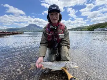 短気な妻に55センチ“黄金アメマス” 短時間でフライローテーション 釧路市・阿寒湖