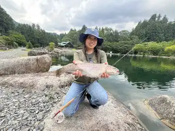 大学生の村野こころさんと、発光路の森フィッシングエリア(FA)を訪れた。こころさんは米ネバダ州に留学しており、夏休みを利用して帰国中。過去にフライを教えたことがあるものの、約1年のブランクがある。それでも今回は“目的”があって、赤身の大物を釣りたいと言う。管理釣り場とはいえ、これは難題である。