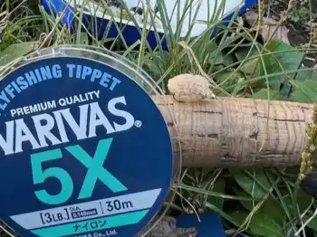 タックルはバリバス・ティペット5X、ヒットフライはビーズヘッドニンフ。竹嶋さんはニンフで良型のイワナを釣り上げていた。