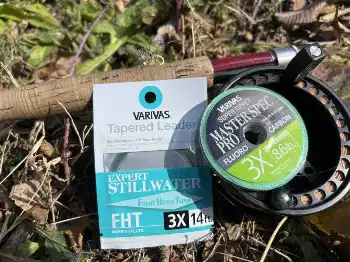 午前11時を回ったところで急に風が強くなり、あまりの寒さにお昼を過ぎると周囲の釣り人が退散し始めた。筆者はパワーのある#6ロッドを使用していたので風に対応できた。重めのショットでストリーマーを沈め、軽くアクションを入れる。次の瞬間、ロッドに衝撃が走りラインが引き出された。上流の瀬に走ってから大ジャンプ。待望のハコスチがヒットした。方向を変えながら強烈な引きとジャンプを繰り返す。十分に時間をかけ浅瀬に寄ったところでランディング成功。幅広ヒレピン46センチのハコスチだった。フライはウーリーバガー#10。筆者は#6のロッドに合わせてバリバスのリーダー「スティルウオーターFHT」3X14フィートに3Xのフロロティペットを使用した。