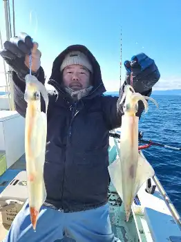 ニヤリ2点掛け 今年の釣運はイカが?26年初めて海へ