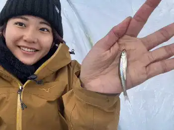 群馬・赤城大沼で氷上バトル “洗礼”浴びても「手繰り」ワカサギ3匹