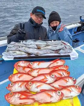 “赤い宝石”キンメ6連輝いた!35センチ級グッドサイズも 千葉・片貝沖