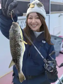 “初挑戦”相模湾で称賛!ラブリーショウサイフグ テンション抜かないようしっかり巻き上げて