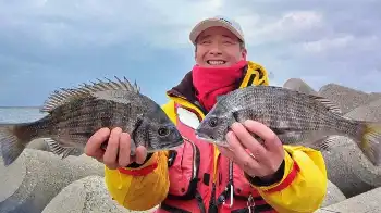 ウキウキ“下層”狙い 満足!クロダイ49センチ 静岡・熱海港堤防