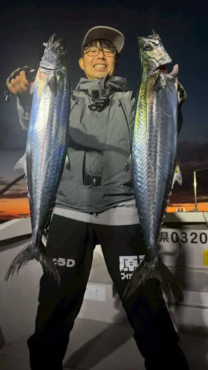 グググん!「来たーっ!!」ジジジ…ラインが少し出る。巻き合わせ!変にフッキングしない。慎重に慎重に。そして上がってきたのは60センチに届かぬサゴシ。サイズは小さくてもよく引くし、丸々太ってる。もうサイズなんかどうでもイイ!やっと釣れた貴重な一匹。魚との出合いにも、船長との出会いにも感謝。全てご縁!この後1匹追加して楽しく今シーズンのサワラを終えることができました。