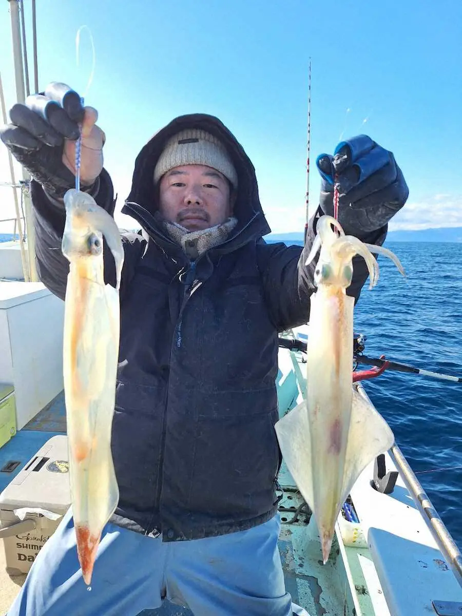 ニヤリ2点掛け 今年の釣運はイカが?26年初めて海へ