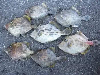徳島県海陽町の大里松原海岸 肝パン良型のカワハギをゲット!!