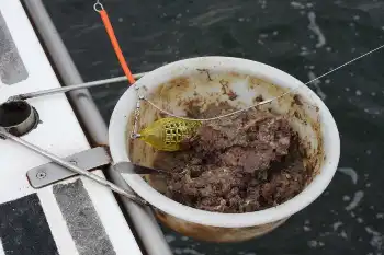 本牧沖の水深は15~20メートル。仕掛けは片天2、3本バリ。オモリは40号。コマセはイワシミンチ。杉村裕二船長からの指示ダナは底上3メートル。オモリが着底してから糸フケを取り、タナを合わせて、コマセをふわっとおいしそうに振る。海の中にイワシの香りを広げていくイメージ。