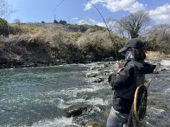 【奥山文弥の釣遊録】神奈川県小田原市などを流れる早川で、釣友の中村渚さんとニジマスなどを狙いました。早川河川漁協では、冬季のキャッチ&リリース(C&R)区間が終了し、通常期C&R区間と春季C&R区間を展開。筆者たちは普段、C&R区間では大きい魚を見つけて釣るサイトフィッシングをしますが、水面がフラットなプールでスレっからしのヤマメがライズをしているとのことで、それらも楽しみにしていました。