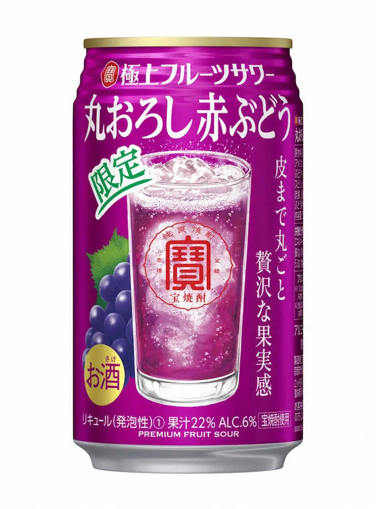 宝酒造(京都市)は「宝 極上フルーツサワー<丸おろし赤ぶどう>」を期間限定で11月16日に発売する。