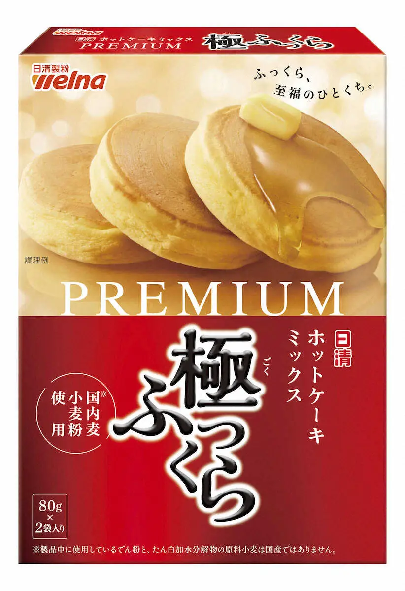 日清製粉ウェルナ(東京)は「日清 ホットケーキミックス PREMIUM 極ふっくら 国内麦小麦粉使用」を発売した。