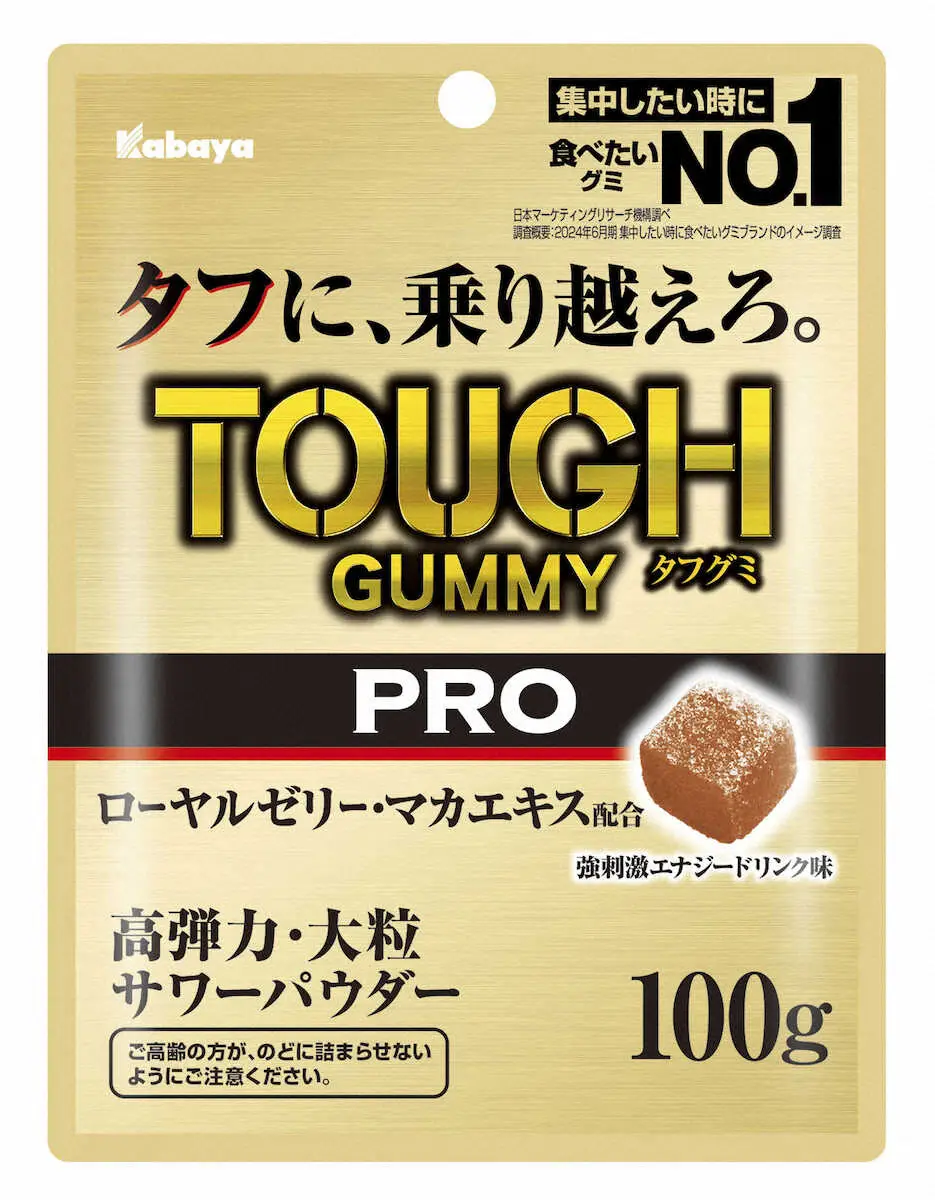高い弾力性と刺激性があり、食べ応えのある大粒のグミで、ロイヤルゼリーとマカエキスを配合。疲れた時や集中力が切れた時などにお薦めという。