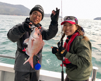 豊富な根魚をはじめ、多種多様な魚種が狙えると評判の串本。釣り人たちにも人気のスポットとあって、マダイ以外にも、ハタ類などがチェイスしていく。そんな絶好の釣り場で使うのはメジャークラフトの「鯛乃実TG」。タイ以外にも使える万能性があるタングステンに専用のサビキをセットした2人は、アカハタやオジサン、フエフキダイなどさまざまな魚をゲットしていく。