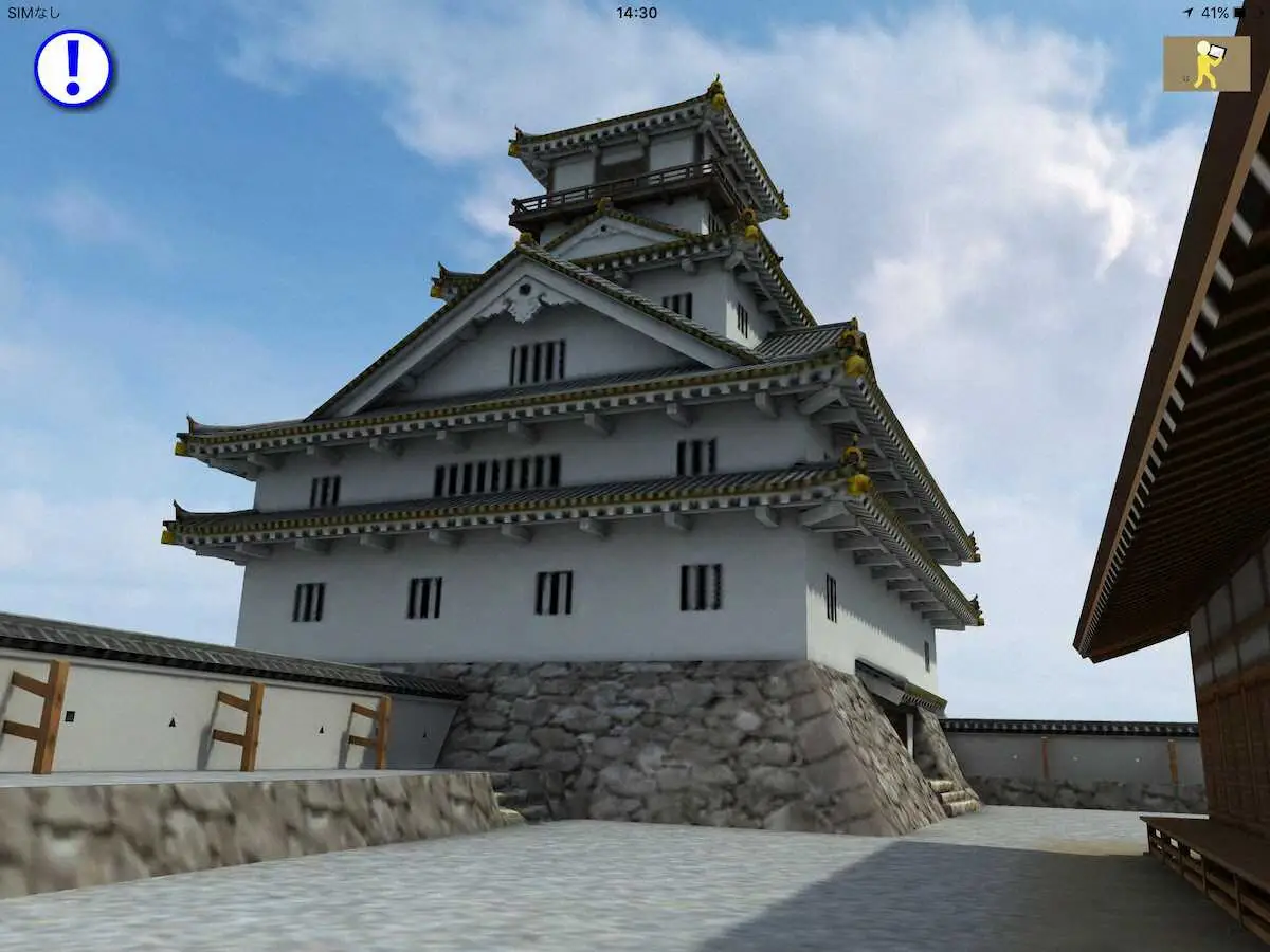 タブロットに映し出された名護屋城のバーチャル映像