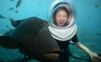 周囲に広がるコバルトブルーの海は透明感も抜群で、海底を歩く「シーウォーカー」を体験した。ウェットスーツに着替えてヘルメットをかぶり、海面より3・5メートル下に設置されたプラットフォームを約20分。ナポレオンフィッシュやロウニンアジなどが目の前にあいさつにやってくる。続いて35分の「ガイド付きシュノーケルツアー」。マリンナチュラリストの説明を聞きながら海の中をのぞくと、カラフルな珊瑚礁が揺れ、アオウミガメやバラフエダイなどの熱帯魚が横切る。人魚になったような気分だ。