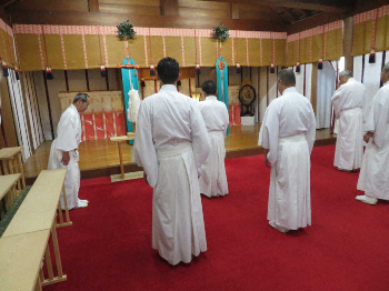 通常、内拝殿には入れないため、特別に参拝できる「正式参拝」に参加。外拝殿でお払いを受けた後、内拝殿に進み、玉串を奉納して参拝、最後にお神酒をいただいたが、同殿の美しさに加え、白い砂利が敷き詰められた白洲はまばゆく、独特のオーラに満ちていた。