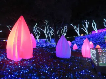 ほかにも、守護星マークをあしらった、きらびやかな「セーラー戦士のステンドグラスウォール」や3種のウォールアートが連なった「美少女戦士セーラームーンアート」など、“イルミジェニック”なフォトスポットも満載。もちろん、従来の「光の海」や「光の花畑」、「光の動物園」などのイルミも以前にも増して鮮やかで、使用するLED電球は関東最大級の600万球。夜景観光コンベンション・ビューローから4年連続で関東三大イルミネーションに認定されたのもうなずけた。