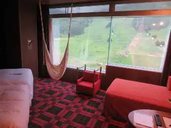 アプローチはホテルそばの「プリンス第2ゴンドラ」に乗って約10分。標高1518メートルにあり、気温20度のゲレンデよりさらに涼しく、極暑から逃れられる別天地。小雨上がりの曇天で眺望に期待はしていなかったが、テラスに立つと、逆に悪天候が雲をつくり雲海のような光景が広がる。雲の下には湯沢の街が広がり、雲の向こうには仙ノ倉山(標高約2026メートル)や三国山(同1636メートル)などの山々がそびえ、雨上がりならではのしっとり感あふれる景観に時間が経つのも忘れた。