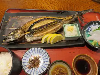 一方で古民家を利用した宿泊施設や陶芸工房、忍者体験館、カフェなどが相次いで開業。その中の一軒、岩本商店のこんにゃくのから揚げ(カップ小200円)がおいしかった。鯖街道の“仕上げ”は、新幹線敦賀駅から徒歩3分の「まるさん屋」=(電)0770(22)4528=で食べた浜焼さば御膳(税込み2475円)。脂がのったさばに串を刺し、丸ごと焼き上げた名物料理で、味とボリュームに圧倒された。