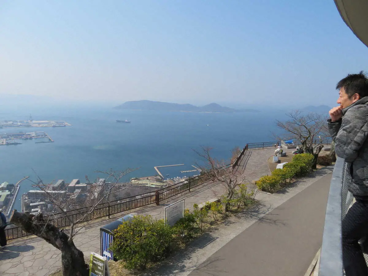 だが、回廊から展望台に出て眼下に広がる海に目を向けると、ミステリーのゾクゾク感は感動のそれに変わった。陽光に映えて青く光る瀬戸内海や鬼ケ島とも呼ばれる女木島、映画「釣りバカ日誌」の最初のロケ地の男木島など大小の島々、高松市街の絶景が広がる。カーブする5つのコーナーには、カフェや源平合戦のパノラマアート作品の展示室などがあるが、それらには目もくれず、180度のパノラマにうっとり。時間が経つのも忘れた。