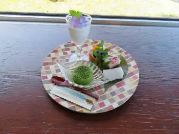 湯上がりには箱根のプリンスホテル4施設で6月30日まで実施中の「箱根寄木細工と紡ぐスイーツめぐり」の一つ、「花木の小径~甘味なる自然の贈り物~」(1900円)を味わった。寄木細工の皿にあじさいヨーグルト、バームクーヘンなど5品が乗ったもので、見た目も美しく、“箱根の甘味”を堪能した。日帰り入浴料2500円。(電)0460(83)5111。