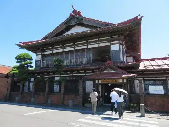その後は同駅から津軽鉄道に乗り、金木駅から徒歩約7分の太宰治記念館「斜陽館」(入館料600円)=(電)同(53)2020=を見学した。文豪・太宰治の生家で、19室もの部屋、庭園、米蔵などがある、入母屋造りの豪邸。明治時代の大地主で父の津島源右衛門が建築したもので、ヒバ材を使用。1950年(昭25)から96年(平8)まで、旅館として利用されていたという。館内の蔵には着用していたマントや直筆原稿などが展示され、太宰をしのぶことができるが、本人はこの家を著書に「風情も何もない、ただ大きいのである」などと書いている。